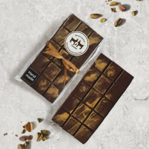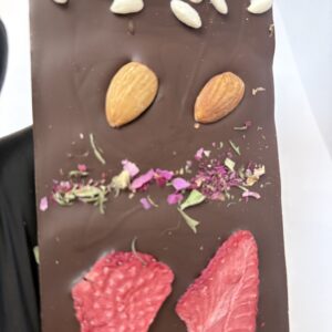 Tabliczka Czekolady – Ręcznie robiona z dodatkiem truskawek, żurawiny, orzechów laskowych i najlepszych pistacji z włoskiej miejscowości Bronte.