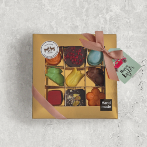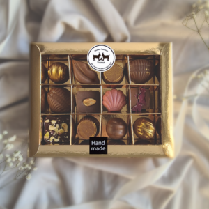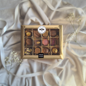 W najwyższej jakości belgijskiej czekoladzie zamknęliśmy różnorodność smaków, które każdemu przypadną do gustu- czekolada deserowa, mleczna. biała oraz rubinowa plus nadzienia -chałwa, kokos, pistacja , orzech i wiele innych. Pralinki dobieramy losowo i pakujemy w pudełko .